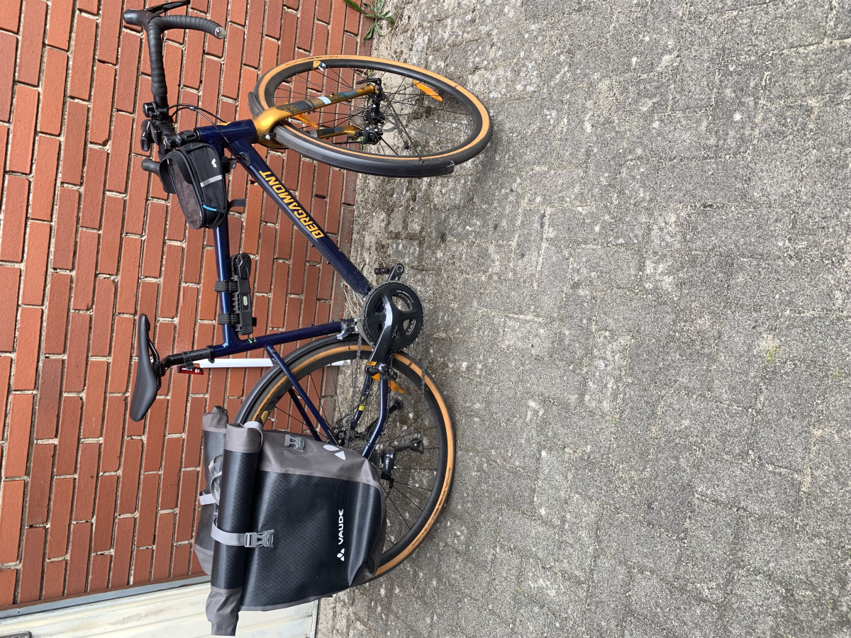 Verkaufe mein gepflegtes Bergamont Gravel Bike mit der Rahmenhöhe 53cm, Farbe dunkelblau mit goldenen Akzenten. Das Rad wurde mit 1174 km nur wenig gefahren und ist in einem sehr guten Zustand – bereit für neue Abenteuer auf Asphalt und Schotter. Ausstattung & Details: • Marke/Modell: Bergamont • Rahmenmaterial: Aluminium (leichte & stabile Bauweise) • Schaltung: Shimano Sora 2x9 • Bremsen: Scheibenbremsen für sichere Kontrolle bei jedem Wetter • Reifen: 700c, pannensicher, mit brauner Seitenwand • Kilometerstand: 1174 km • Inklusive: • VAUDE Gepäcktasche Aqua Back, Black 2x 24 L (wasserdicht, ideal für Pendler oder Touren) • Rahmentasche (perfekt für Handy, Werkzeug oder Snacks) • Sigma Tacho (BC 5.0 WL ATS) • Sigma Aura 100Set(LED Front/Rücklicht,Dämmbar mit Bremslicht) • Hebie Alu Schutzblech-Gepäckträgersystem • Ursus Hinterbauständer King • Air Tag Halterung zum Orten des Rads Zustand: • Leichte Gebrauchsspuren, technisch einwandfrei • Sofort fahrbereit • Keine Unfälle oder Stürze Bei Bedarf gibt es die Original Rechnung dabei. Privatverkauf keine Garantie oder Gewährleistung