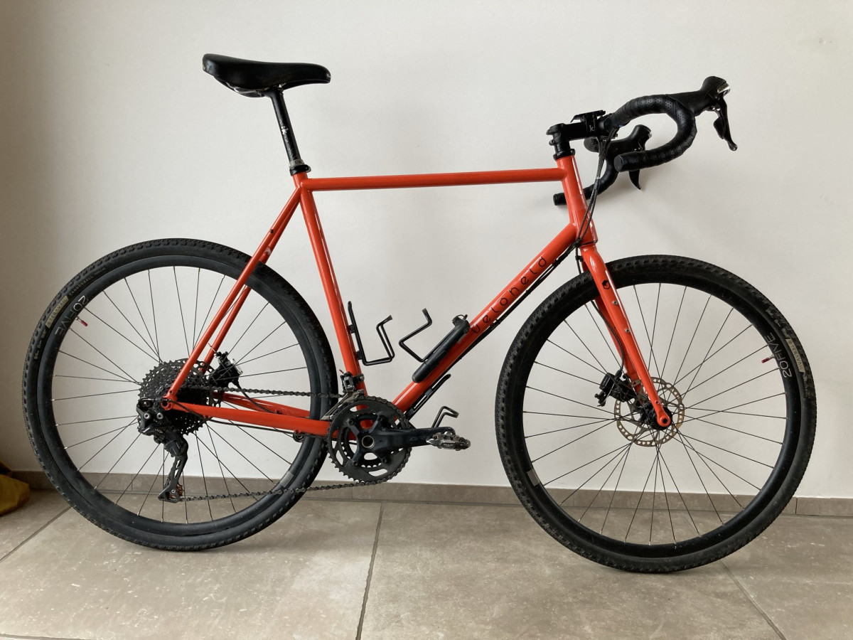 Moin zusammen, zum Verkauf steht ein Custom Veloheld Icon X Aufbau von 2023 in Größe XXL (Rh 62cm), Neupreis 4300€. Ich bin das Fahrrad ca. 6000km gefahren und Verkaufe es, weil ich mich wieder voll auf den Rennrad-Sport konzentrieren möchte. Das Icon X ist der perfekte Allrounder, sowohl für den Alltag als auch für Bikepacking-Reisen durch ferne Länder. Ausstattung: Rahmen: Veloheld Icon X Steel XL RAL 2002 (Blutorange) Gabel: Veloheld Icon X Steel RAL 2002 (Blutorange) Tretlager: Acros BSA 68 Steuersatz: Acros ZS44/ZS44 1 1/8 taperd Felgen: Hope 20five 700C, 32L VR-Nabe: Hope Pro 4 12x100mm Centerlock 32L HR-Nabe: Hope Pro 4 12x142mm Centerlock 32L, Shimano Freilauf Reifen: Terravail Cannonball Durable Black 42mm x 700C Kurbel: Shimano GRX 800 2-fach 46/30T Casette: Sunrace CSM-8 (11-42T) Umwerfer: Shimano GRX-800 2-fach Schaltwerk: Shimano XT long cage mit Hope Umlenkrollen + Lingaret TanPan Kette: Shimano Ultegra HG 2x11 Schalthebel: Shimano 105-6800 mechanisch (2x11) Bremssättel: TRP-Hy/Rd hydromeachnisch + SwissStop Resin Beläge Züge: Jagwire Road Pro (compressionless) Bremsscheiben: Shimano 160mm (VR+HR) Lenker: Salsa Cowchipper 46cm + Brooks Bar Tape Vorbau: Fizik Cryano R3 100mm Sattelstütze: Fizik Cryano R3 27.2mm Sattel: Turbo Leder Schwarz Pedale: Shimano XTR (SPD) Es sind noch diverse Ersatzteile und Zubehör für das Fahrrad vorhanden die ich gerne gegen einen kleinen Aufpreis beilege: Ersatz-Bremssattel, Shimano Shifter-Hoods, Hope-Achs-Umrüstsatz, Ersatz-Speichen, Garmin eTrex 30 mit Halterung, Hope Tubeless Ventile & Flüssigkeit. Die Felgen und Mäntel sind Tubeless-Ready, momentan sind aber Schläuche verbaut. Des weiteren wurde der Rahmen mit einer dünnen transparenten KFZ Schutzfolie beklebt, um Lackschäden durch das Scheuern von Rahmentaschen zu verhindern - die Folie kann selbstverständlich rückstandsfrei entfernt werden. Standort: 48161 Münster Nienberge, gerne vorbeikommen und Probefahren. Verkauf außschließlich mit Kaufvertrag! Privatverkauf, keine Garantie oder Rücknahmen!