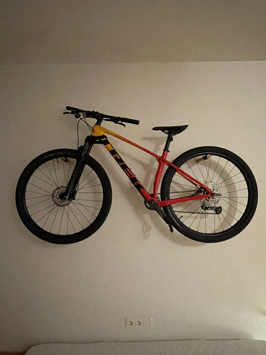 Trek Procaliber 9.5 Carbon – Traumrad in Top Zustand, kaum gefahren! Abholung wäre super! Größe M Ein echter Blickfang in Radioactive Red / Marigold Fade – sportlich, elegant und fast zu schön zum Fahren. Dieses hochwertige Carbon-Mountainbike wurde nur wenige Male bewegt, dann liebevoll gepflegt und dekorativ aufbewahrt. Keine Kratzer, kein Sturz, technisch wie neu. Das Procaliber 9.5 gehört zu den beliebtesten Hardtails von Trek – leicht, schnell und komfortabel dank des innovativen IsoSpeed-Entkopplers, der Stöße dämpft und den Fahrkomfort deutlich verbessert. Ideal für sportliche Touren, Cross-Country oder als hochwertiges Trainingsbike. Neupreis: rund 1.900 € Verkauf nur wegen Nichtnutzung. Das Rad hängt derzeit sauber und trocken an der Wand. ⚙️ Technische Daten • Modell: Trek Procaliber 9.5 Carbon (2022) • Farbe: Radioactive Red / Marigold Fade • Rahmen: OCLV Mountain Carbon mit IsoSpeed • Gabel: RockShox Recon Gold RL, 100 mm Federweg • Schaltung: SRAM SX Eagle 12-Gang • Bremsen: Shimano MT200 hydraulische Scheibenbremsen • Laufräder: Bontrager Kovee 29” Tubeless Ready • Reifen: Bontrager XR2 Comp 29x2.20” • Sattelstütze: Bontrager Alloy 31,6 mm • Gewicht: ca. 11,5 kg • Größe: M • Zustand: kaum gefahren, keine Stürze, top gepflegt Das Fahrrad ist in einem außergewöhnlich guten Zustand, wurde nur sehr selten gefahren und immer in der Wohnung aufbewahrt. Es hat leichte Spuren vom Fahren im unteren Bereich (minimaler Staub/Schlamm), die vor Abgabe selbstverständlich gereinigt werden.