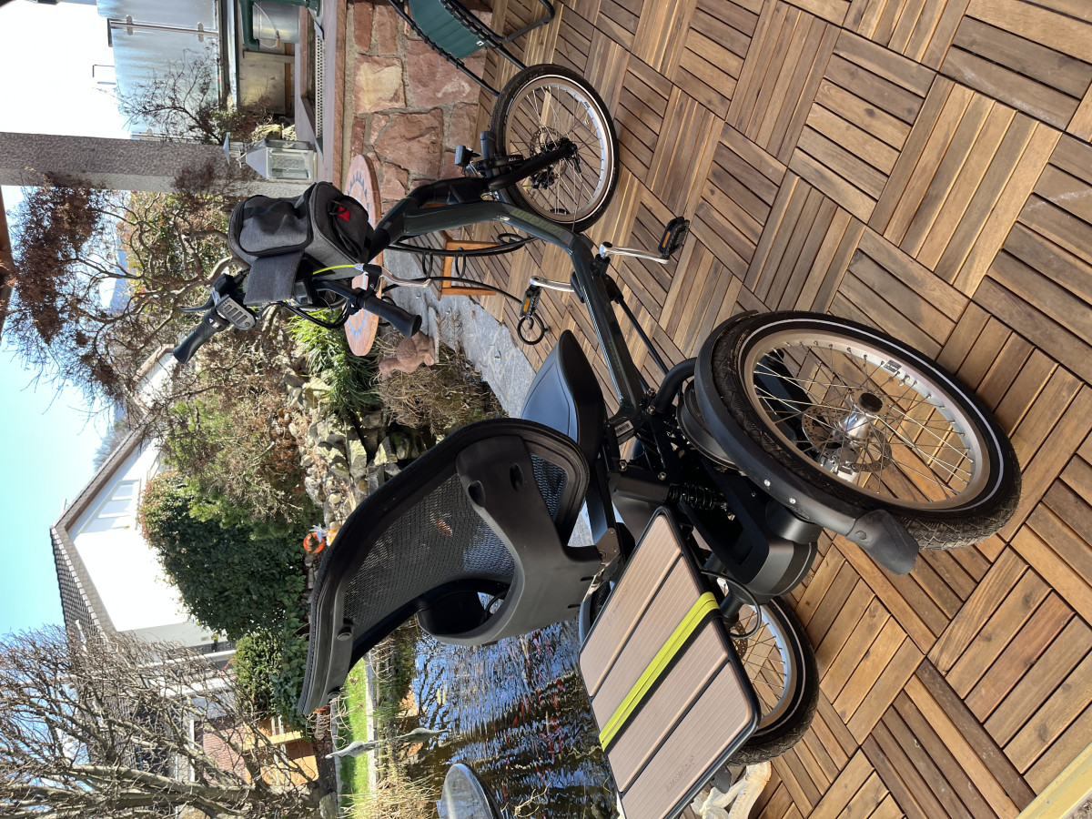 Van Raam Easy Rider 3 – neuwertiges Sitz-Dreirad mit 880 Wh Akku Zum Verkauf steht ein Van Raam Easy Rider 3 in sehr gutem Zustand. Das Dreirad wurde lediglich 75,5 km gefahren und ist technisch wie optisch nahezu neuwertig. Der Easy Rider 3 ist ein komfortables Sitz-Dreirad für Erwachsene und überzeugt besonders durch seine: • Sehr einfache Fahreigenschaften – auch für Einsteiger geeignet • Niedrigen Schwerpunkt für hohe Stabilität im Stand und während der Fahrt • Bequeme Sitzposition mit nach vorne gerichteter Pedalbewegung • Rahmenfederung für zusätzlichen Fahrkomfort • Ergonomischen Sitz mit o verstellbarer Rückenlehne o Steißbein-Entlastung o erhöhten Seitenkanten für optimalen Halt Die Sitzposition lässt sich bequem per Schnellspannhebel an die Körpergröße anpassen. Durch die angenehme Sitzhöhe ist das Auf- und Absteigen besonders einfach. Trotz seiner stabilen Bauweise ist das Rad: • sehr wendig • besitzt einen kleinen Wendekreis • und ist schmal genug für normale Türen Über die Van Raam App können verschiedene Fahrprofile eingestellt werden. Von geringer bis sehr starker Motorunterstützung. Technische Daten & Ausstattung • Hersteller: Van Raam • Modell: Easy Rider 3 • Artikelnummer: FID1510 • Baujahr: 07/2022 • Laufleistung: 72 km • Rahmengröße: M • Farbe: Granitgrau • Silent Elektro HT Motor • Großer 24,8 Ah Akku (880 Wh) – statt Standard 11 Ah • Externer Ladepunkt • Beleuchtung inklusive • AXA Rahmenschloss • AXA Adapter-Kette mit Satteltasche • Kleine Tasche am Lenker • Gepäckträger bis 20 Kg Traglast • Einstellbare Sitz- und Lenkerposition • Kettenschutz • Feststellbremse Neupreis 8.973,86 EUR Bei Interesse oder Fragen gerne melden. Besichtigung und Probefahrt nach Absprache möglich.