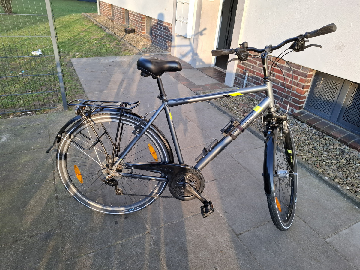 Ich biete ein 28" Herrenfahrrad mit einer Rahmengröße von 53 cm von Pegasus an. Das Fahrrad ist ca. 4 Jahre alt und in einem guten bis sehr guten Zustand. Das Fahrrad ist mit einem Gelsattel ausgestattet, hat 21 Gänge Shimano-Schaltung und einen Gepäckträger mit bis zu 25 Kg Traglast und für Klickfix geeignet. Zu dem Fahrrad gibt ein zwei neue Ersatz-Mäntel und -Schläuche. Die Reifen sind noch nicht abgefahren, können aber dann bei Bedarf durch die neuen ersetzt werden. Die Schlosshalterung am Rahmen, sowie die Luftpumpenhalterung sind nicht mit dabei. Das Fahrrad ist voll funktionsfähig und mit einem Licht über Nabendynamo ausgestattet. Das Fahrrad wird nur, auf Grund einer eBike Anschaffung, verkauft. Für Selbstabholer oder eigener Versandorganisation und Kostenübernahme.