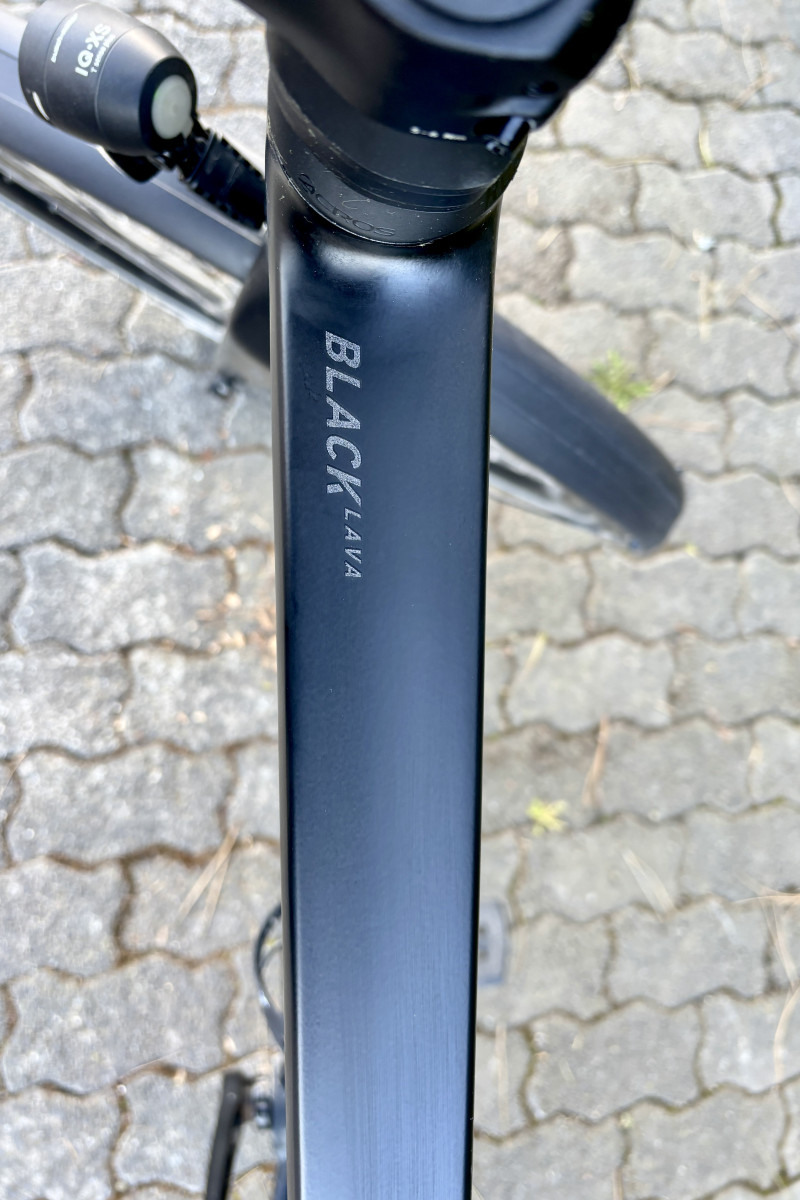 HERSTELLER: Rose Bikes GmbH, Bocholt. MODELL: Black Lava 2. TYP: Treckingrad/Tourenrad/Alltagsrad. FARBE UND DESIGN: mattschwarz ("obsidianschwarz"), extrem aufgeräumte und "cleane" Optik dank glatt verschliffener Schweißnähte und vollständig integrierter Züge. RAHMEN: Leichter Aluminiumrahmen und Carbongabel. Rahmengröße 21"-Zoll/53 cm für Körpergröße im Bereich von ca. 176-188 cm bzw. Schrittlänge im Bereich 83-88 cm (Herstellerempfehlung) - ich bin 181 cm groß und das Rad "sitzt" perfekt. ALTER/ZUSTAND: Keine drei Jahre alt (neu gekauft im Mai 2023), sehr guter technischer und optischer Zustand, kaum gefahren (weniger als 1.500 Kilometer), letzte Inspektion 2025. ANTRIEB: Gates-Carbonriemen (wartungsarm und nahezu geräuschlos), 11-Gang-Shimano-Alfine-Schaltung. BREMSEN: Hydraulische Scheibenbremsen. REIFEN: Angenehm breite Schwalbe Marathon-Reifen (50-622). SONSTIGE AUSSTATTUNG: StVO-Ausstattung (verkehrssicher), Gepäckträger, Ständer, integriertes Speichenschloss. WEITERES ZUBEHÖR: Zusätzlich zum Originallieferumfang wird noch mitverkauft (1) Rose-Flaschenhalter Pro AL4A, schwarz (am Fahrrad montiert), (2) Rose-Trinkflasche Longdistance, schwarz, 750 ml, (3) Rose-Werkzeugdose BOX4Tools, schwarz (paßt in den Flaschenhalter), (4) AXA Einsteckkette RLC Plus (100 cm) für das Rahmenschloss. ABHOLUNG/LIEFERUNG: Abholung in 61191 Rosbach wird bevorzugt. Versand auf Wunsch und Risiko des Käufers ist vorbehaltlich gesonderter Abstimmung möglich. Weitere aktuelle Angaben zum Modell "Black Lava 2" auf den Internetseiten des Herstellers Rose Bikes GmbH: https://www.rosebikes.de/p/rose-black-lava-2-160438