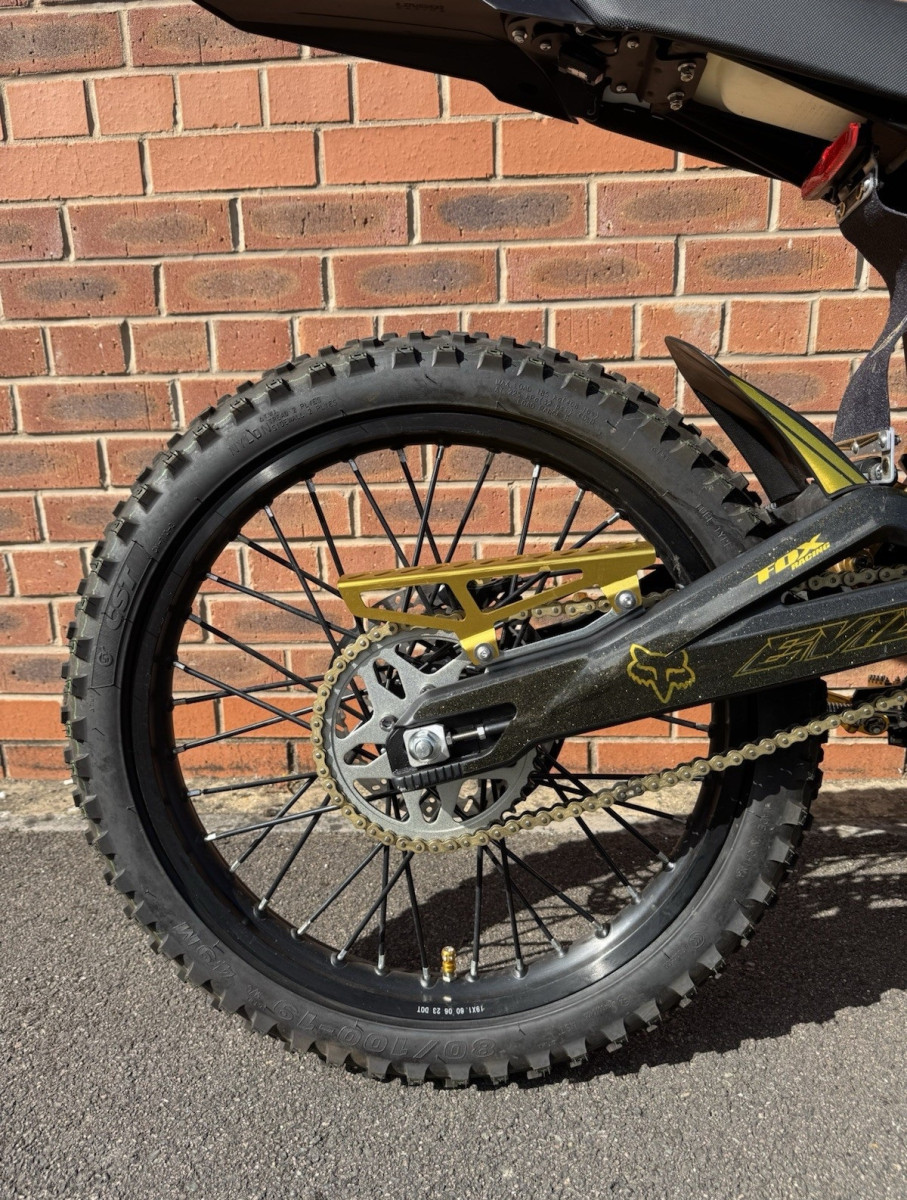 Die Talaria Sting R MX4 (Modelljahr 2024) ist ein leistungsstarkes elektrisches Dirtbike mit einem 60-V-45-Ah-Akku, einem 8-kW-Motor und einem robusten Getriebe für leisen und zuverlässigen Kettenantrieb. Technische Daten: Gewicht: 66 kg Maximale Leistung: 8 kW Sitzhöhe: 840 mm Antrieb: Getriebe → Kette Ladezeit: ca. 3 Stunden