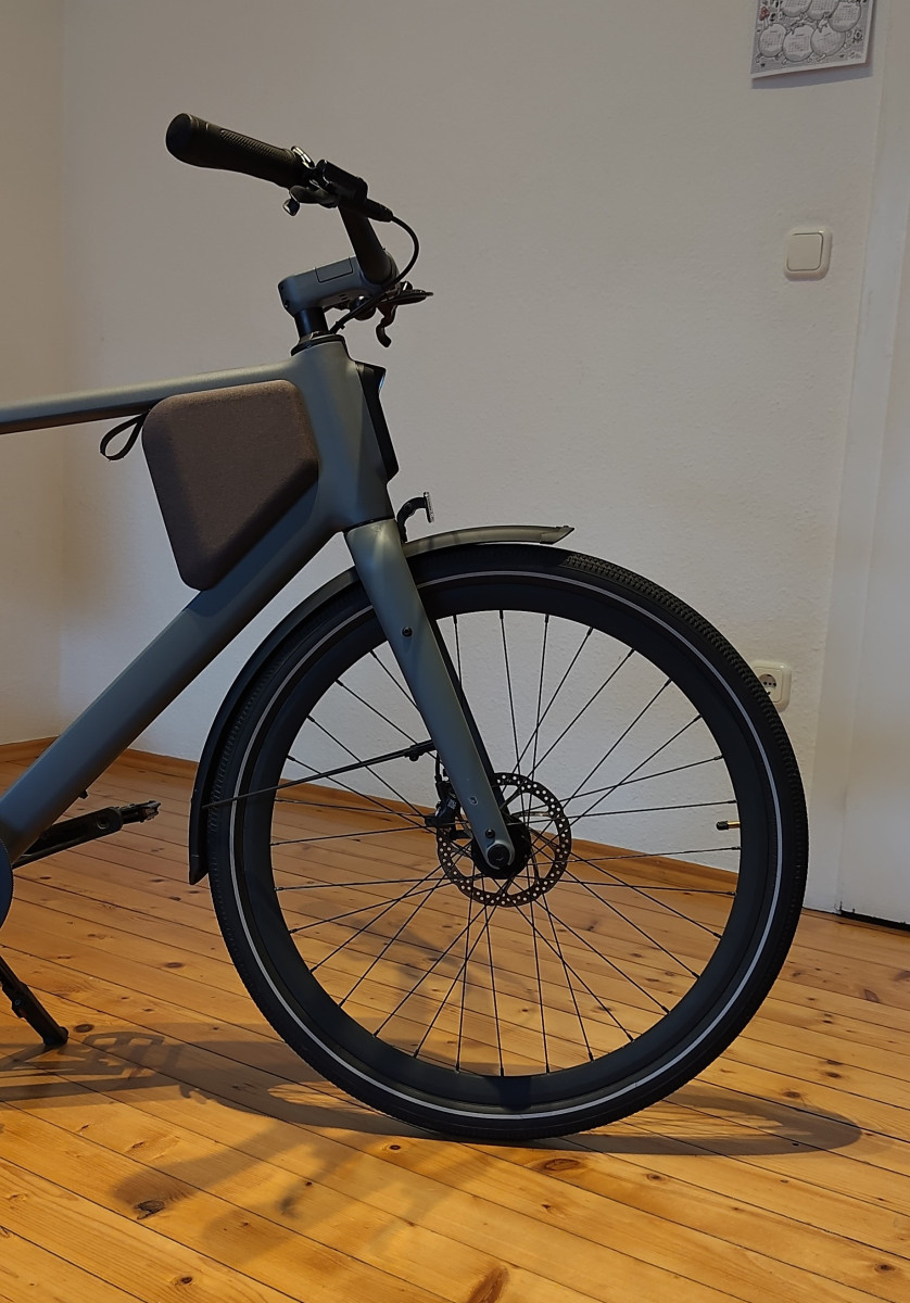 Das Lemmo MK2 ist als modulares E-Bike konzipiert, sodass Sie je nach Vorliebe zwischen vollelektrischem Modus und manuellem Fahren wechseln können. Es richtet sich an Pendler in der Stadt, die Wert auf Flexibilität, Stil und Leistung legen. ⚙️ Hauptmerkmale Intelligentes Dual-Mode-System Verwendbar als: Normales Fahrrad (ohne Motorunterstützung) Voll unterstütztes E-Bike Verwendet eine abnehmbare „Smartpac“-Akku- und Motoreinheit Ohne Smartpac wird es zu einem leichten, normalen Fahrrad Akku & Reichweite Abnehmbarer Akku für einfaches Laden Typische Reichweite: ~60–100 km, abhängig von Gelände und Unterstützungsstufe Schnellladefunktion Intelligente Konnektivität App-Integration per Smartphone Funktionen: Fahrtenaufzeichnung Navigation Diebstahlwarnung Integriertes GPS-Tracking ⚡ Leistung Hinterradnabenmotor (EU-konform, 250 W) Tretunterstützung bis 25 km/h (EU-Standard) Geschmeidiges, natürliches Fahrgefühl (nicht ruckartig wie bei günstigeren E-Bikes) Design & Verarbeitung Minimalistischer, schlanker Rahmen (oft mit Carbon-Riemenantrieb) Leicht für ein E-Bike (insbesondere (ohne Smartpac) Carbon Gabel Carbon Riemen Integrierte Handyhalterung Integrierte und saubere Kabelführung Gefederte Sitz Sattel Gewicht 18Kg (15Kg ohne Akku) Rahmengröße L Sicherheit GPS- und App-basiertes Verriegelungssystem Benachrichtigungen bei Diebstahl Elektronische Sperre des Hinterrads Abholung in Mannheim.