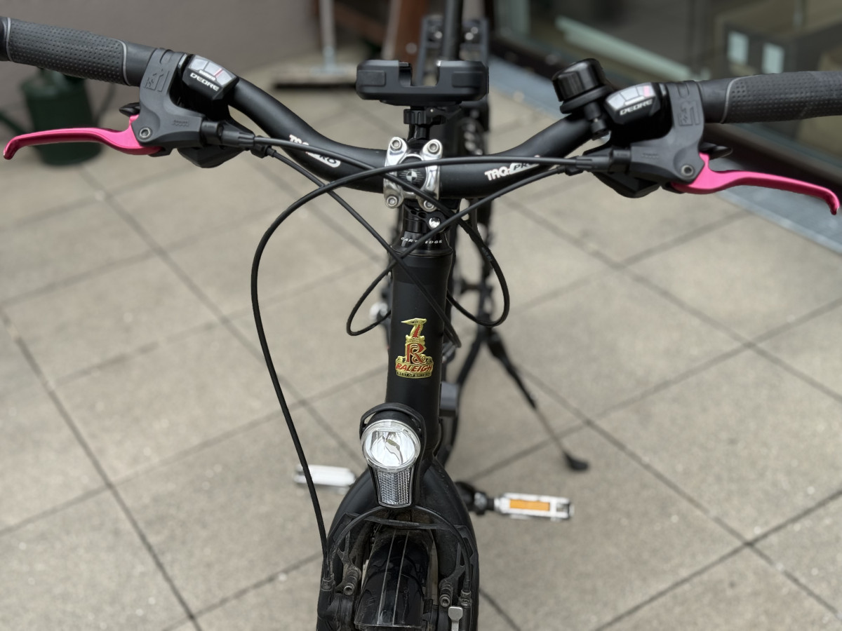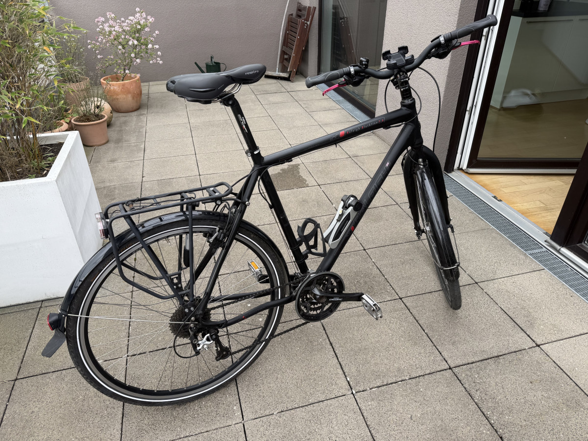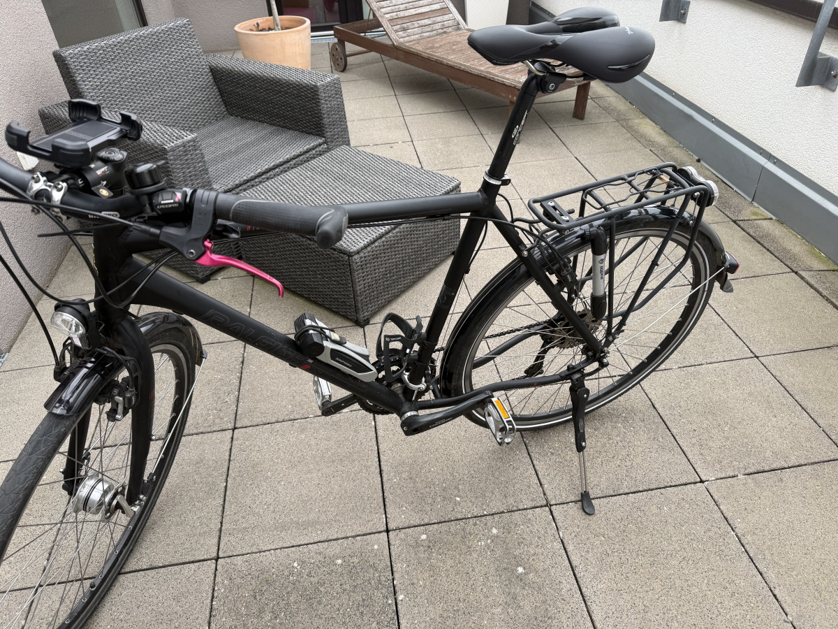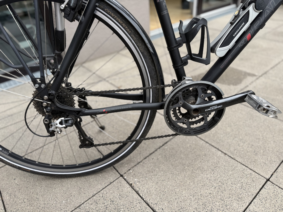 Raleigh Blackline 7.0 Trekkingrad 28 Zoll | XT/Deore | Top Zustand | Vollausstattung Zum Verkauf steht mein hochwertiges Trekkingfahrrad der renommierten Marke Raleigh (Blackline 7.0) in einem exzellenten Zustand mit jeder Menge Zubehör und Ausstattung. Raleigh gehört seit Jahrzehnten zu den etablierten Herstellern im Premiumsegment für Trekkingräder und steht für Qualität, Langlebigkeit und durchdachte Ausstattung. • 28 Zoll Trekkingrad • Rahmengröße 55 cm • (Diamantrahmen) • 27-Gang Shimano Schaltung • Shimano Deore Schaltgruppe mit XT-Schaltwerk (High-End-Komponente) • Magura hydraulische Felgenbremsen (Premiumklasse) • Nabendynamo • Hochwertige LED-Beleuchtung (Lumotec LED Fly Sensor Plus) • Standlicht hinten • Rücklicht integriert im Gepäckträger Schaltung: Die Deore XT Schaltung von Shimano gehört zur höchsten Premiumklasse und steht für extreme Präzision, Langlebigkeit und saubere Gangwechsel – auch unter Last. Das sorgt für ein besonders geschmeidiges und zuverlässiges Fahrgefühl, das man merkt. Das Fahrrad klackert an keiner Stelle und der Schaltwechsel ist extrem weich und geschmeidig. Bremsen: Die verbauten Magura hydraulischen Felgenbremsen zählen zu den bewährtesten und leistungsstärksten Bremssystemen im Trekkingbereich. Sie bieten: • sehr hohe Bremskraft • exzellente Dosierbarkeit • hohe Zuverlässigkeit bei jedem Wetter Zustand: Das Fahrrad befindet sich in einem sehr guten, gepflegten Zustand ohne Beschädigungen. Es kommt frisch aus einer Inspektion, bei der: • die Bremsen nachgezogen wurden • die Schaltung eingestellt wurde • die Kette frisch geölt wurde Das Fahrrad ist sofort fahrbereit und technisch einwandfrei. Zubehör (inklusive) • Trelock FS455 Faltschloss (Sicherheitsstufe 4 von 6) (74 EUR) • Getränkehalter (15 EUR) • Smartphone-Halter 20 EUR) • Klingel mit integriertem Apple AirTag zur Ortung (EUR 20) • hochwertige Bereifung (Schwalbe vorne, Continental hinten) • praktische Autoventile (Tankstellen-kompatibel) • integrierte mobile Luftpumpe am Gepäckträger Bei Interesse gerne melden – Probefahrt selbstverständlich möglich