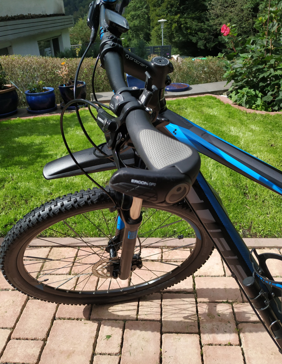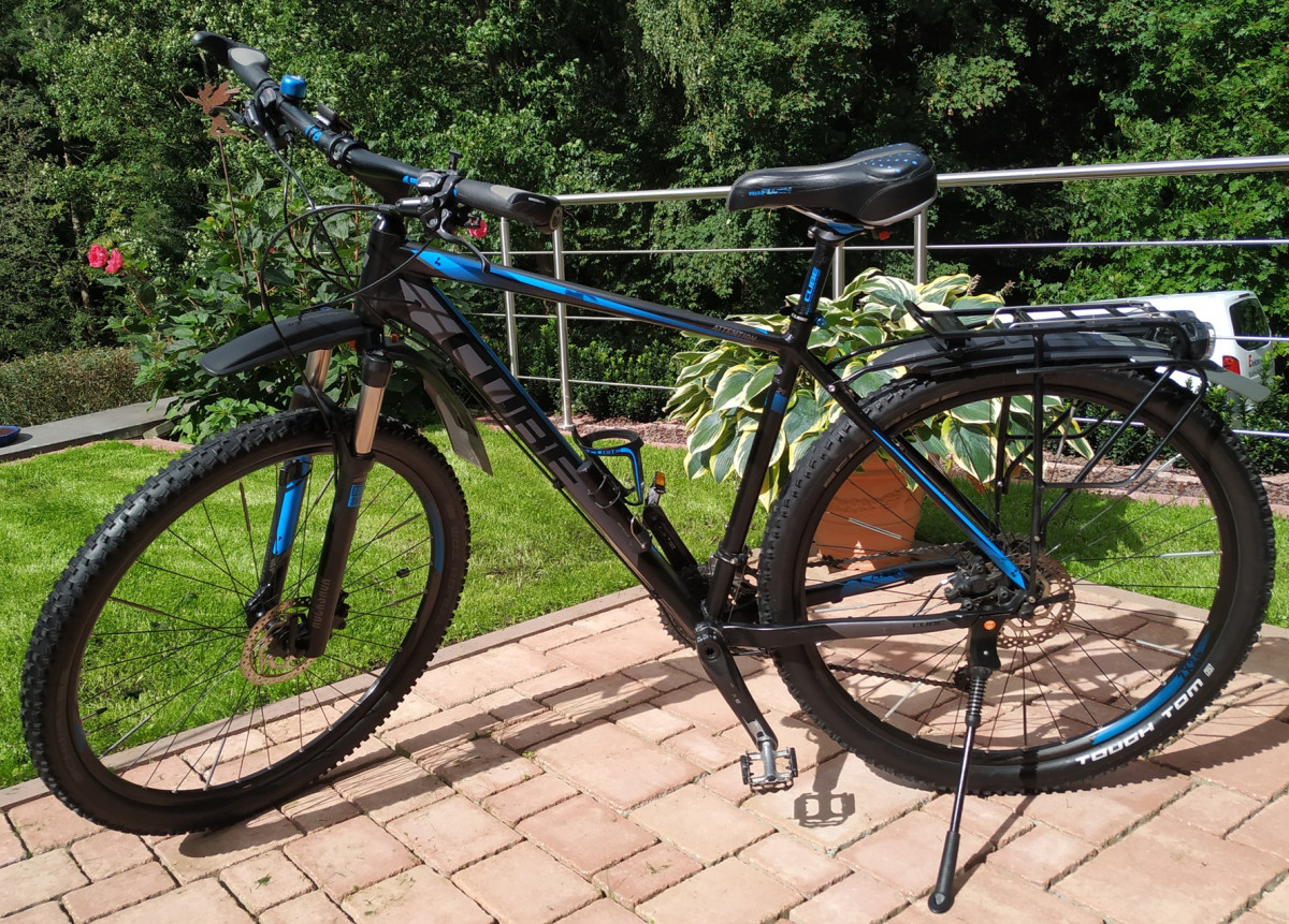 Mit dem Fahrrad wurde immer gemäßigt umgegangen, keine Sprünge, Gelände-Trails oder dergleichen. Es wurde meistens auf befestigten Wegen gefahren. Ich verkaufe es, weil ich auf ein E-Bike umgestiegen bin. Details: - Rahmen: Aluminium, 21 Zoll, passend für ca. 1,70–1,85 m - Räder: 29 Zoll - Farbe: schwarz-grau-blau - Schaltung & Bremsen: Komp.-Gruppe:Shim. XT/Deore/Sh.Disc - Lenker: mit Erhöhung / Vorbau - Federgabel: RockShox - Reifen: Schwalbe Tough Tom Zubehör: - Hinteres und vorderes Schutzblech: SKS X- und Shockblade - Flaschenhalter Cube Kst. inklusive Fahrradpumpe Spec. MTB Mini - Gel-Sattel (Originalsattel ebenfalls vorhanden) - Gepäckträger: Atran Yelo26-29 - Ständer Cube/Hebie Spezial - Computer: Sigma BC 8.12 ATS sw. - Beleuchtung hinten: B&M f. Gep.Tr. - Pedale (Standard): YP Ind.Lg. inkl. Refl. - Klingel: Billy blau matt - Ergonomische Griffe: ERCON GP2 Zustand: Rahmen ohne Risse, normale Gebrauchsspuren, technisch in Ordnung, Inspektionen vom Händler durchgeführt. Preisvorstellung: 349,00 € Festpreis (Neupreis war: 1.212,00 Euro Standort: Bad Herrenalb Privatverkauf keine Garantie, Haftungsübernahme oder Rücknahme. Besichtigung und Testfahrt möglich.