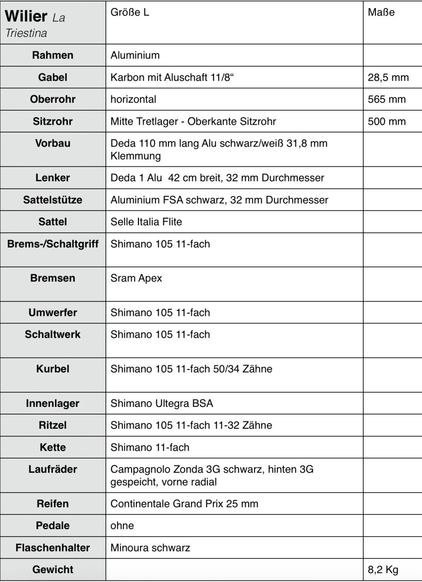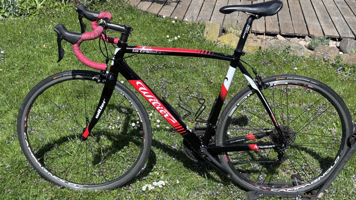 Rennrad Wilier La Triestina Aluminium-Rahmen, Carbon-Gabel, Shimano 105 11-fach Gruppe (Jahrgang 2017) mit Felgenbremsen von Sram und Campagnolo-Laufräder (Alle Maße und Details siehe Fotos). Ein sehr schönes und leichtes Rennrad mit Gebrauchsspuren aber technisch in Top-Zustand und hochwertigen Anbauteilen. Optional auch inklusive Klickpedale von Point (SPD kompatibel) und mit kurzem Vorbau (60 mm). Das Rad ist aufgrund des geslopten Rahmens (abfallendes Oberrohr) an viele verschiedene Körpergrößen anpassbar (ca. 170 cm - 182 cm). Es stand lange ungenutzt im Keller und wurde insgesamt wenig gefahren. Preis VB Nur Abholung. Privatverkauf deshalb keine Gewährleistung und keine Rücknahme.