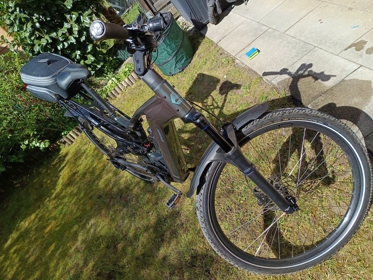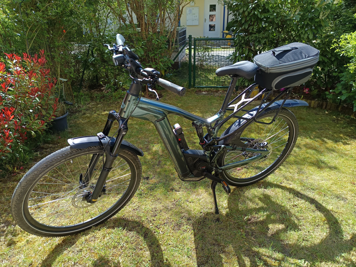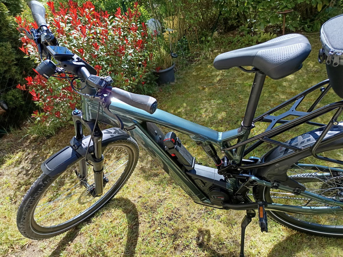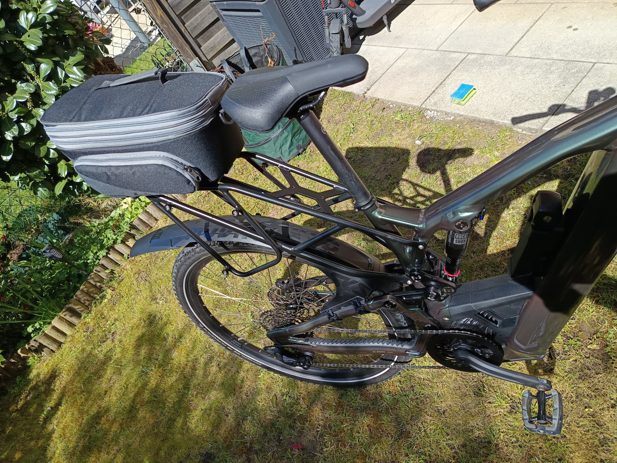 Verkaufe mein hochwertiges Bergamont E-Horizon FS Expert E-Bike in Größe L. Gekauft am 17.07.2025. Rechnung vorhanden. Das Rad wurde nur 130 km gefahren und ist in nahezu neuwertigem Zustand. Keine Stürze, keine Mängel, technisch einwandfrei. Preis: 2.900€ Vergleichbare Modelle aktuell neu ab ca. 3.999 € erhältlich Technische Daten: Motor: Bosch Performance Line CX Gen4, BES3, 250 W, 85 Nm Akku: Bosch PowerTube 625 Wh Display: Bosch LED Remote mit Kiox 300 Ladegerät: Bosch Standard Charger 4A Rahmen: Aluminium, 28 Zoll, AL-6061, Fully mit 120 mm Federweg hinten Gabel: Suntour Mobie 35 Air, 130 mm, Steckachse Dämpfer: Rock Shox Deluxe Select Plus RT Air Schaltung: Shimano Deore Linkglide, 1x10 Schaltwerk: Shimano Deore RD-M5130 Shadow Plus Schalthebel: Shimano Deore SL-M5130 Kassette: Shimano Linkglide CS-LG600-10, 11-43 Kette: Shimano Linkglide CN-LG500 Bremsen: Shimano BR-MT410 hydraulische Scheibenbremsen Laufräder: 28 Zoll Felgen: Alex EXR25, Disc, 25 mm Reifen: Schwalbe Hurricane Addix, Reflex, 57-622 Naben: Vorne Shimano HB-MT400-B, 15x110 mm Hinten Shimano FH-MT400-B, 12x148 mm Kurbel: FSA CK-320, 38t Ausstattung: Gepäckträger: Racktime / BGM E-Adventure Carrier, Snapit 2.0 System Scheinwerfer: B&M IQ-XS, 80 Lux Rücklicht: B&M Toplight 2 C Ständer: Syncros Kontaktpunkte: Lenker: BGM Pro Riser Vorbau: Satori Python, einstellbar Griffe: BGM Comfort Ergo Sattel: Syncros Capilano Trekking Gel Gewicht: ca. 29,5 kg Zulässiges Gesamtgewicht: ca. 160 kg Umbauten / Extras: Mudrocker Schutzblech Upgrade (verbesserter Spritzschutz) Trelock Schloss (Trigo System) Racktime Gepäcksystem mit abnehmbarer Tasche Erweiterbare Tasche mit ausklappbaren Seitentaschen