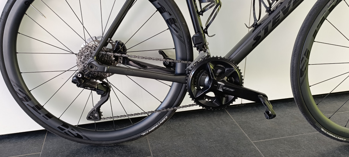 Verkaufe mein voll funktionsfähiges Top gepflegtes, Sturzfrei, Rennrad in der Größe : XL RH 61cm / bei 191 Körpergr. u. Schrittlänge 89cm Shimano 105Di2 2x12fach-Antrieb. DTSwiss P 1800 Spline 23 Disc Laufradsatz mit Continental Gand Prix 28-622-Reifen ‼️ Alternativ: Carbon EliteWheels LRS gegen 400€ Aufpreis ‼️ Rahmen: Aluminium Gabel: Stevens Full Carbon SL Schalt-Bremshebel: Shimano 105Di2 ST-R7170 Bremse: Shimano 105 BR-R7170 hydraulisch Bremsscheiben: Shimano RT-CL 800 – Ice Technology Freeza mit 160mm Kurbelsatz: Shimano 105 50/34 - 175mm Umwerfer vorne: Shimano 105Di2 Schaltung: Shimano 105di2 RD-R7150 Kette: Shimano CN-M7100 Kassette: Shimano 105 CS-R7101 11-34 Z Lenker:deda Vorbau: Deda Superbox V2 /120mm Sattel: Selle Italia SLR Boost TM Superflow Sattelstütze: Deda Zugverlegung: intern Aufladekabel für Akku BT-DN300 2 CARBON Flaschenhalter STEVENS registriert OHNE PEDALE Kostenloser Versand ‼️ Besichtigung und Probefahrt möglich ‼️ Privatverkauf, keine Rücknahme und Gewährleistung
