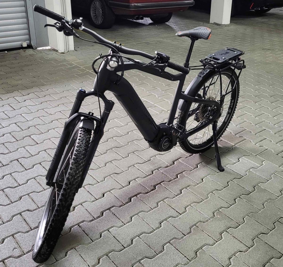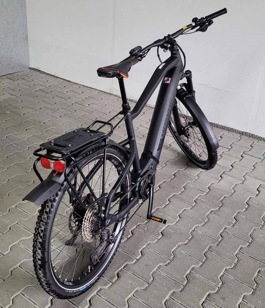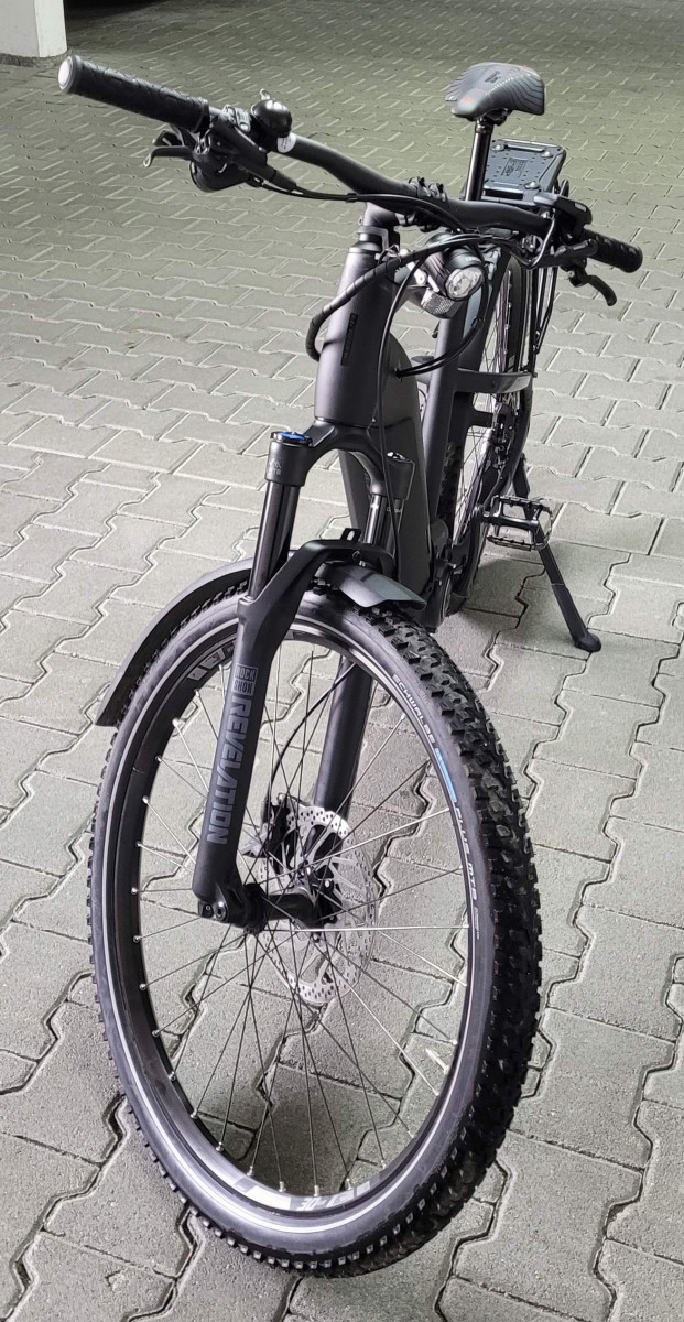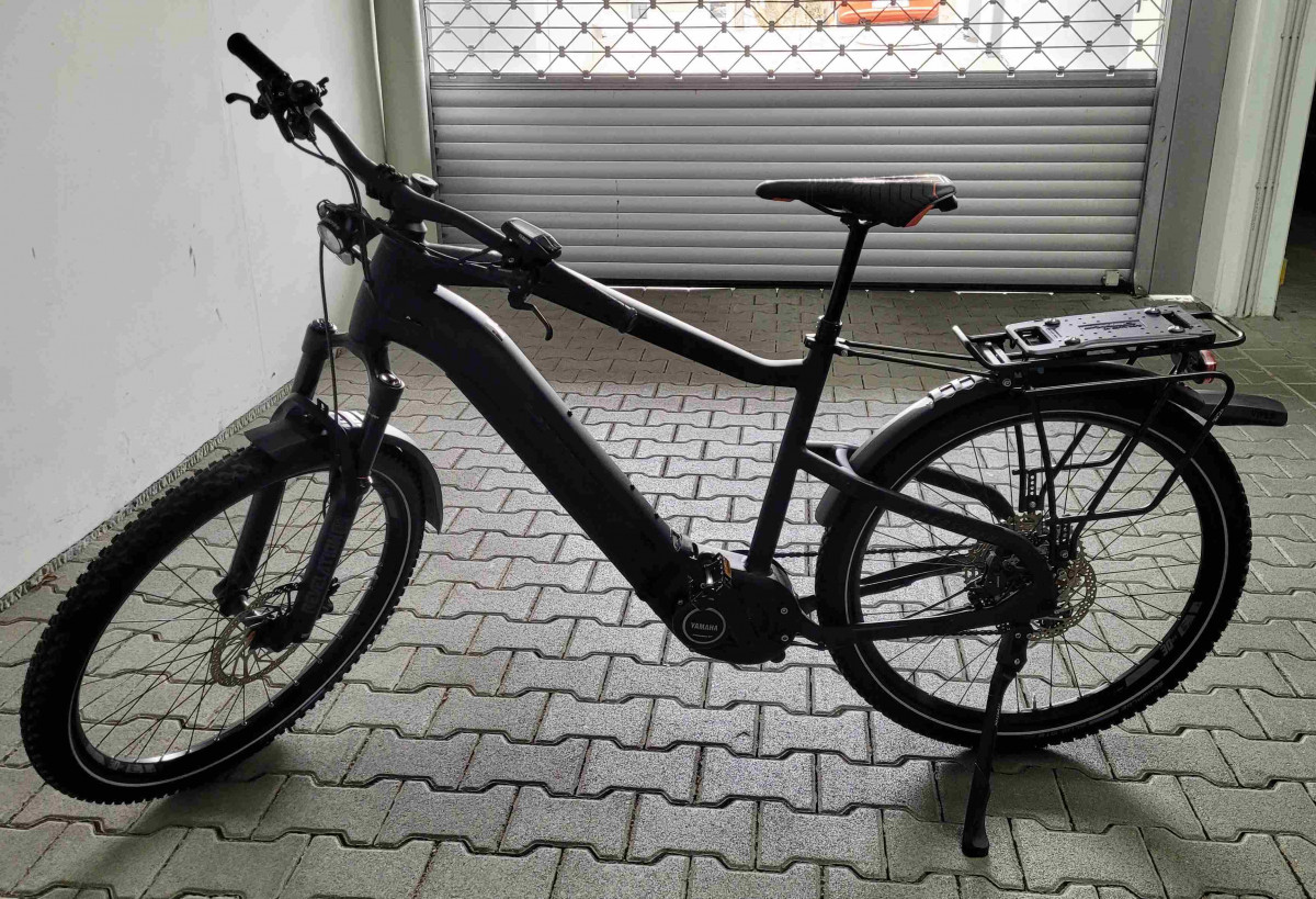 Neuwertiges E-MTB Haibike Hardseven 8 Modell 2021. Rahmengröße L keine Kratzer, technisch und optisch optimal in Schuß. Komplett mit Licht, Schutzblechen und Gepäckträger. 3 Komplettsätze Bremsbeläge sind auch noch mit dabei. Das Rad wurde am 8.6.2021 gekauft, Neupreis war 3.720,-- Euro. Es hat also noch 14 Monate Restgarantie. Nur Abholung. Spezifikation: Rahmen: Aluminium 6061, Steckachse X-12 (1.00) x 148mm Gabel: RockShox Revelation RC, Air, Travel: 120mm Schaltwerk: Shimano Deore XT M8100 Shadow Plus, 12-fach Schalthebel: Shimano Deore M6100 Zahnkranz: Shimano HG6100, 10-51 Zähne Kette: Shimano CN-M6100 Kettenblatt: Stahl, 38 Zähne Bremshebel: Shimano M6100, Aluminium Bremse vorne: Shimano M6100, Aluminium, 203 mm, 4-Kolben Bremse hinten: Shimano M6100, Aluminium, 180 mm, 4-Kolben Felgen: Rodi Tryp 30, Aluminium, 27, 5 Zoll Vorderradnabe: Shimano MT400-B Hinterradnabe: Shimano MT410 Speichen: Sapim Leader, black Lenker: XLC Topflat 740mm Vorbau: XLC Alu, A-Head Steuersatz: A-Head verjüngt Sattel: XLC MTB Sattelstütze: Dropper-Post Remote 31.6, Teleskop, 31.6 mm, Aluminium Motor: Yamaha PW-ST System, 250W, 70Nm, 25km/h Display: Yamaha Side Switch Akku: InTube 630Wh Ladegerät: Schnellladegerät 4A Zul. Gesamtgewicht: 120kg Rad-Typ: MTB Hardtail