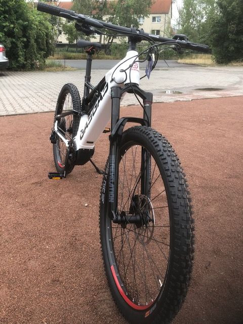 Spezifikationen Laufradgröße 29" Akku Simplo EnergyTube, 630 Wh, 36 V Display Yamaha Display A, LCD-Display Motor Yamaha PW-ST, 250 W, 70 Nm Rahmen 29", Alloy 6061, integrierter Akku, Boost, 150 mm Dämpfer RockShox Deluxe Select+, Luft, 230x65 mm zul. Fahrzeuggesamtgewicht 130 kg Rahmenfarbe weiß Rahmenfarbe schwarz STVZO konform STVZO Nein Anhängerfreigabe keine Anhängerfreigabe Bedieneinheit im Display integriert Pedale GASGAS, Aluminium Schalthebel SRAM SX Eagle, Single Click Kette SRAM SX Eagle Sattel GASGAS MTB Akku Simplo EnergyTube, 630 Wh, 36 V Display Yamaha Display A, LCD-Display Motor Yamaha PW-ST, 250 W, 70 Nm Hinterradbremse SRAM, 4-Kolben, Hydraulische Scheibenbremse Zahnkranz SRAM PG-1210, 11-50 T Rahmen 29", Alloy 6061, integrierter Akku, Boost, 150 mm Dämpfer RockShox Deluxe Select+, Luft, 230x65 mm Vorderradbremse SRAM, 4-Kolben, Hydraulische Scheibenbremse Speiche Mach1, Edelstahl Griffe GASGAS MTB, Schraubgriffe Schaltwerk SRAM SX Eagle, 12-S Lenker GASGAS Riser 31,8 mm, 780 mm, Sweep: 9 °, Rise: 15 mm Sattelstütze GASGAS Pro, 31,6 mm, Dropper Post Vorbau GASGAS 31.8, 0 °, Ahead Ladegerät Simplo Schnellladegerät, 4 A Vorderrad Rim: Mach 1 TRUCKY 30, geöst, Tubeless Ready / Hub:GASGAS DA210F, 6-Loch, 15x110 mm, Steckachse Hinterrad Rim: Mach 1 TRUCKY 30, geöst, Tubeless Ready / Hub:GASGAS DA210R, 6-Loch, 12x148 mm, Steckachse, HG Reifen Schwalbe Nobby Nic, Evolution, 62-622, 29x2.4 Kettenblatt , 38 T Gabel RockShox Revelation RC, DebonAir, Luft, 150 mm, tapered Kurbelarm GASGAS EC40, Aluminium geschmiedet, JIS
