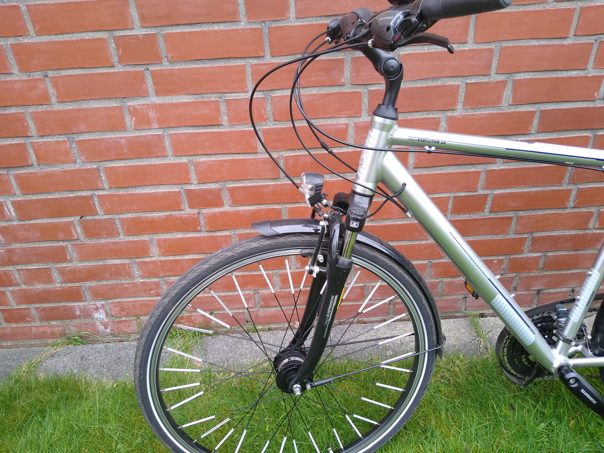 Verkauft wird ein fast unbenutztes Fahrrad ! Rahmen: Raleigh Trekking 0.5, Aluminium Gabel: SR Suntour CR-7, Aluminium Schaltung: Shimano XT Schalthebel: Shimano ST-EF51 Kurbelsatz: Shimano Altus Übersetzung: vorne: 48/38/28, hinten: 11-32 Lenker: Ladytown Vorbau: Aluminium, einstellbar Sattel: Concept Trekking Sattelstütze: Patent, gefedert Bremsen: V-Bremse, Aluminium Naben: vorne: Shimano 3N31, Nabendynamo, hinten: Aluminium Felgen: Hohlkammer, Aluminium Reifen: Schwalbe Citizen Light, 42-622 Schutzbleche: Kunststoff mit Kantenschoner Gepäckträger: Tour 2-Bein, Aluminium Kettenschutz: Herrmans T-Wave Scheinwerfer: AXA Echo, 15 Lux LED Rücklicht: AXA Slim Steady, mit Standlicht Dynamo: Shimano 3N31 Nabendynamo Pedale: Kunststoff mit Antirutscheinlage Ständer: Hinterbauständer Gewicht: ca. 16,5kg Geometriedaten: siehe Artikelbilder/Artikelbeschreibung Farbe: Chromosilver Größen: (1) 28" Herren Diamant M/50cm, L/55cm, XL/60cm; (2) 28" Damen Connect S/45cm, M/50cm, L/55cm; (3) 28" Wave S/45cm, M/50cm, L/55cm Achtung : Nur Abholung , kein Versand !!!